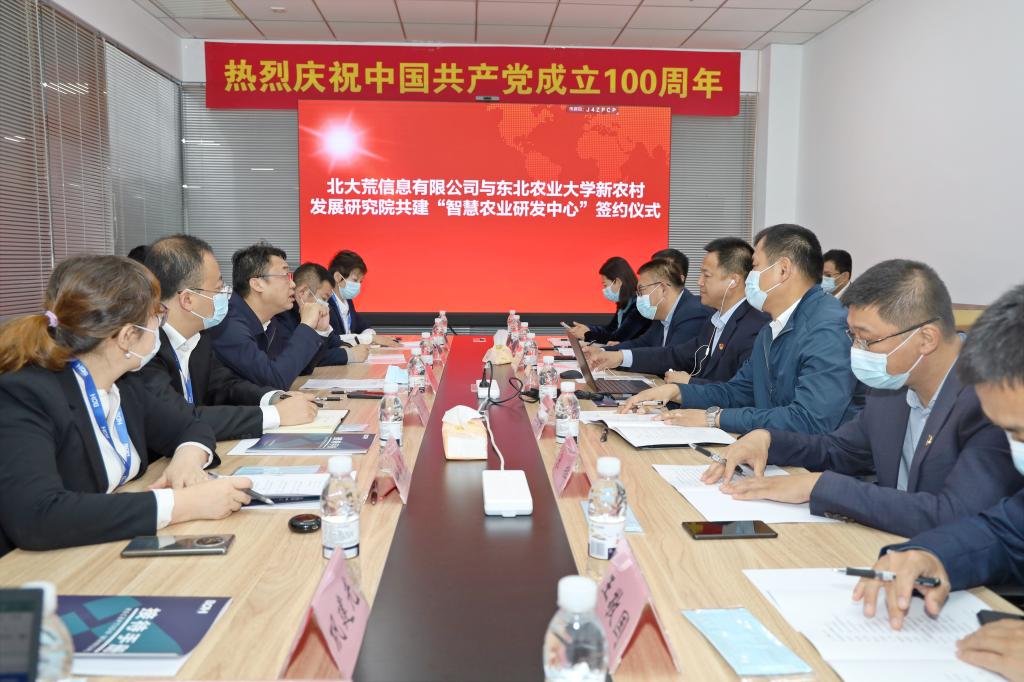 为扎实推动我校与北大荒信息有限公司智慧农业领域深度交流合作,同时推动研究生产学研教育培养模式,9月29日上午,我校赴北大荒信息有限公司共同举行“智慧农业研发中心”(以下简称“研发中心”)与“研究生联合培养基地”(以下简称“培养基地”)的签约授牌仪式。东北农业大学新农村发展研究院院长朱志猛、副院长宋珲,研究生院院长刘世英,冠军白菜策略网cmp8论坛院长陈庆山、副院长王敬国、副院长张林、智慧农业系主任魏峭嵘及教师代表杨明亮和赵振庆等人参加会议;北大荒信息有限公司董事长张允海,副总经理兰天义、罗广超、任荣荣,纪委书记徐洪波,首席技术官巩建光和部分公司人员参加会议。仪式由任荣荣主持。